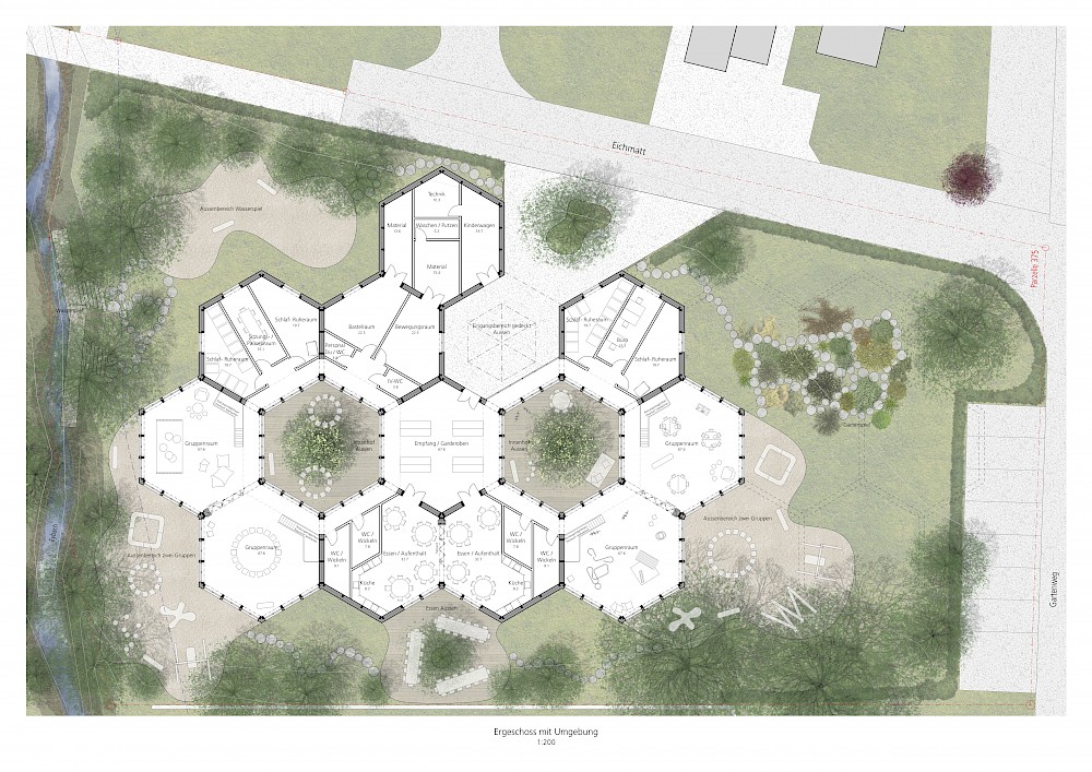 Projektumfang: Projektstudie für die neue Kinderkrippe in Elementbauweise für die Schweizer Paraplegiker-Stiftung, Nottwil